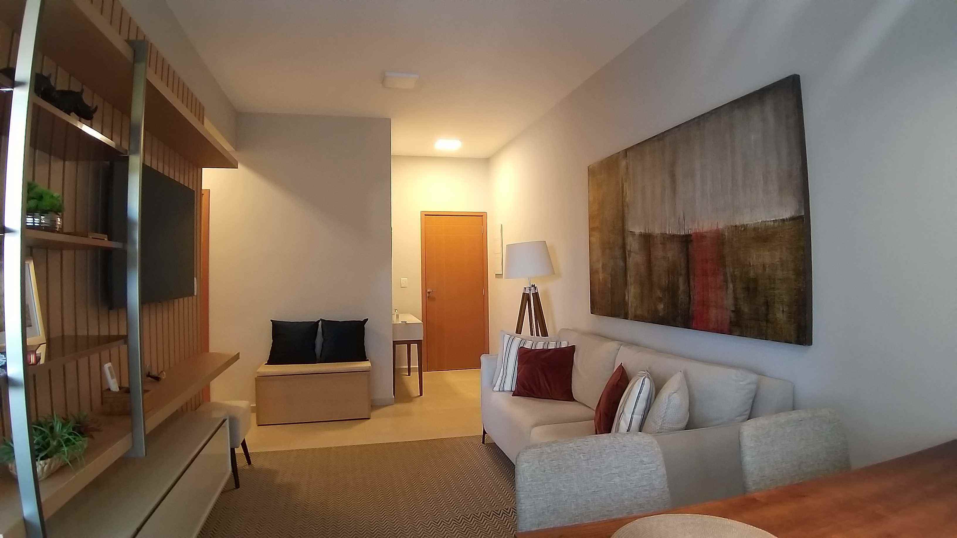 Apartamento com hall de entrada, sala de tv, cozinha planejada, lavanderia planejada, sacada gourmet, dois quartos sendo um com suíte e banheiro social.